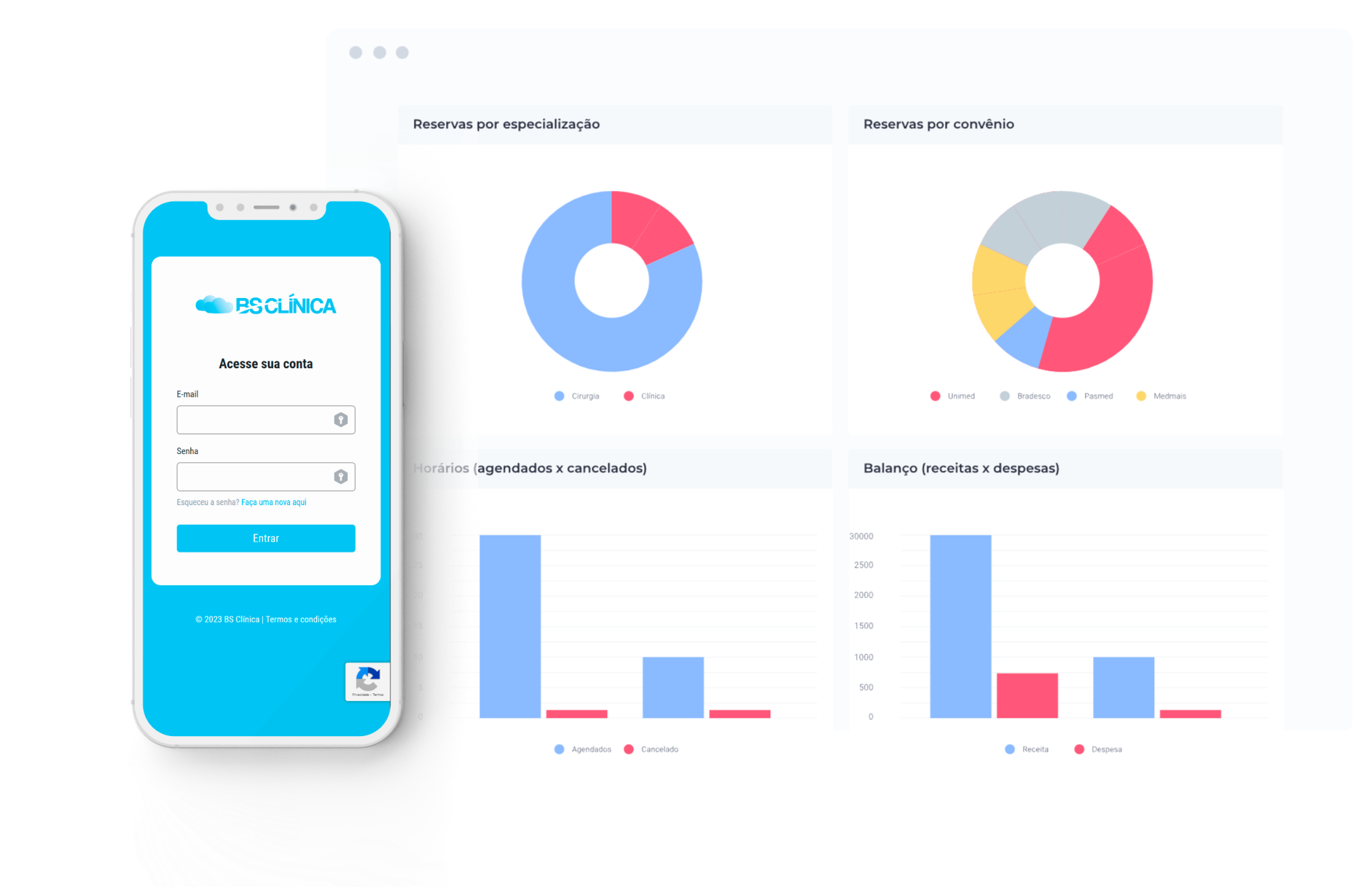 Além disso, você pode acompanhar todos os agendamentos e gerenciar o fluxo de consultas diretamente pelo seu smartphone, tablet ou notebook.